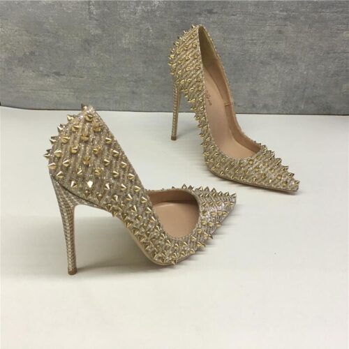Women’s Shoes Golden Ladies Rivet High Heels Net Red 12CM