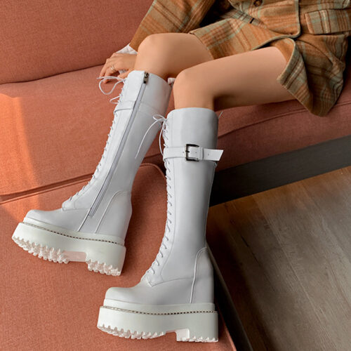 Black inner heightened Martin boots women 12cm super high heel