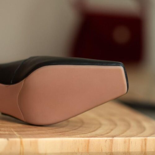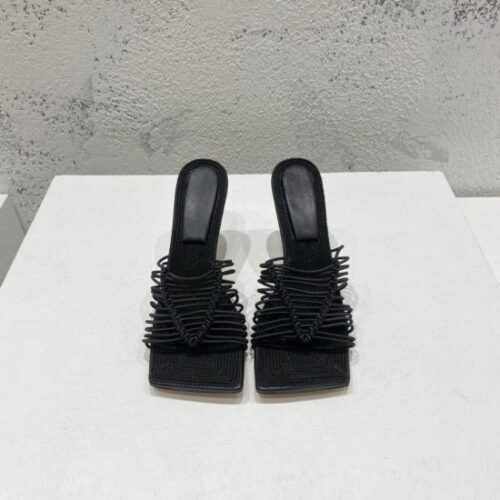 Square-toe High-heel Sandals In Woven Mesh And Leather