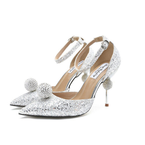 Fashion Rhinestone Silver Pointed High Heels Single Shoes