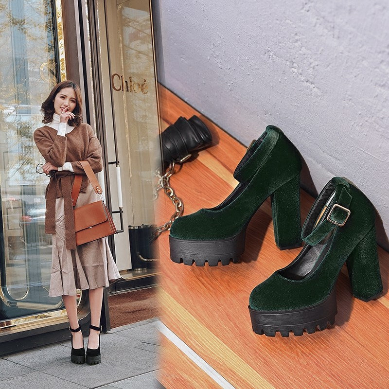 Platform shoes with thick heels and high heels